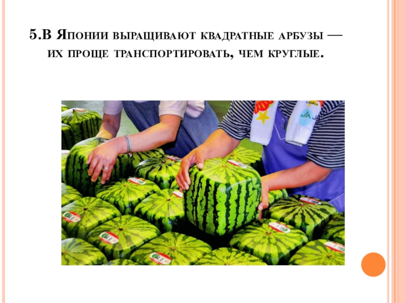 Слайд 135.В Японии выращивают квадратные арбузы — их проще транспортировать, чем круглые.