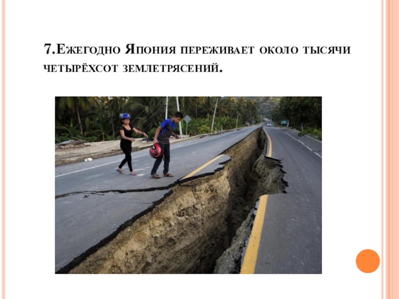 7.Ежегодно Япония переживает около тысячи четырёхсот землетрясений.