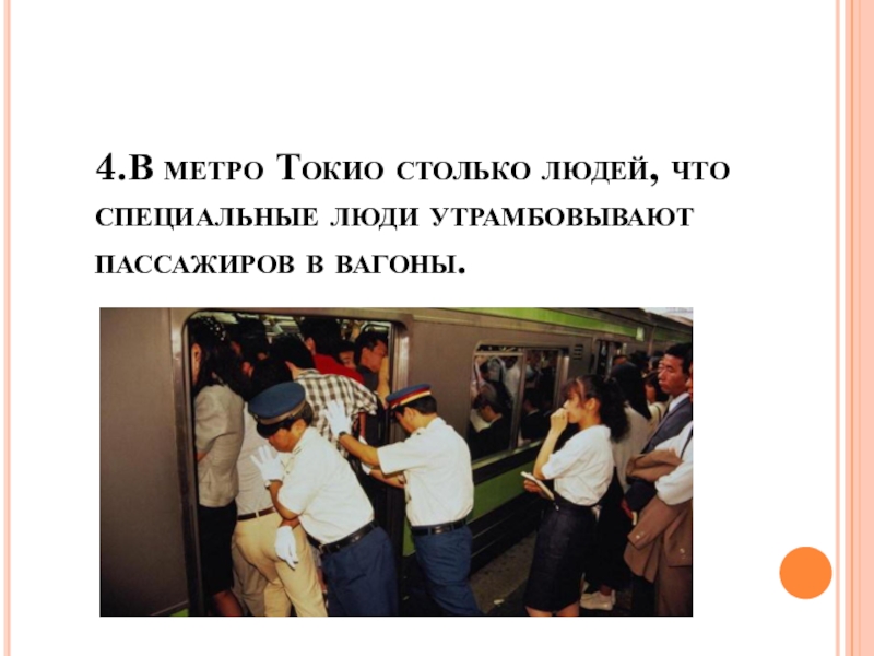 4.В метро Токио столько людей, что специальные люди утрамбовывают пассажиров в вагоны.