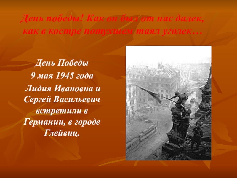 Лидия Ивановна и Сергей Васильевич встретили в Германии, в городе Глейвиц.