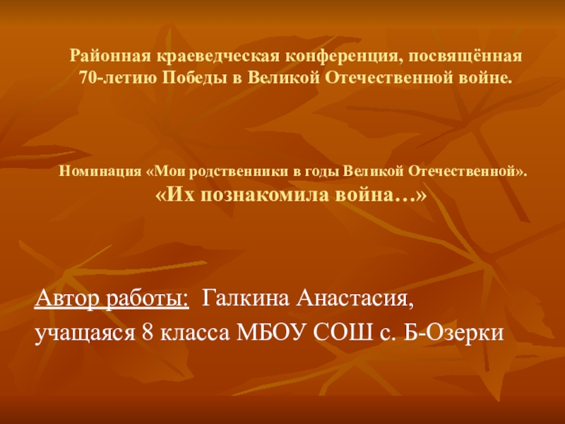 Номинация «Мои родственники в годы Великой Отечественной».