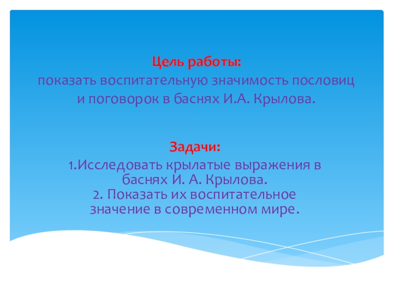 1.Исследовать крылатые выражения в баснях И. А. Крылова.