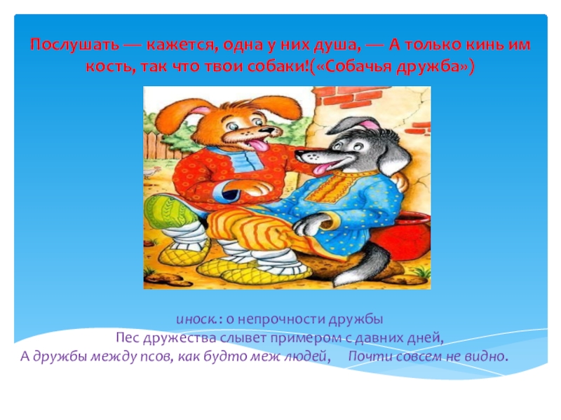 А дружбы между псов, как будто меж людей, Почти совсем не видно.