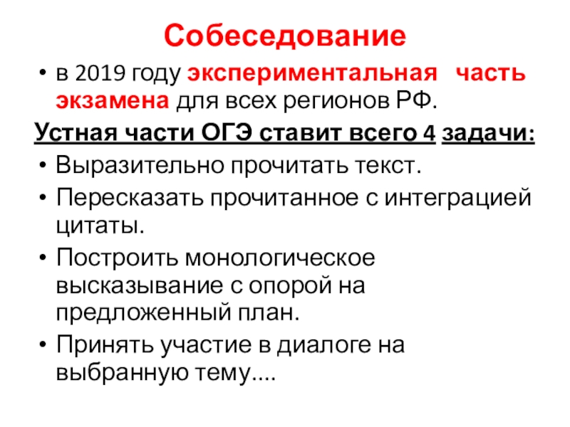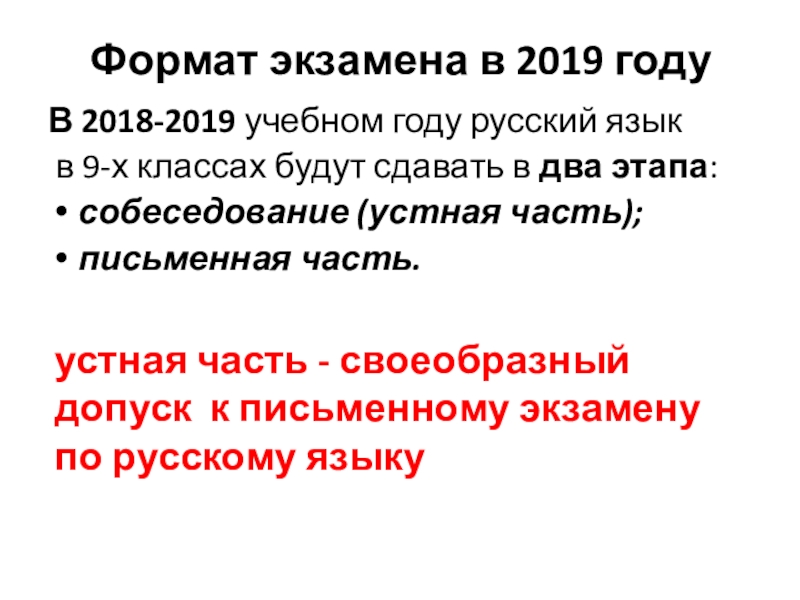 устная часть - своеобразный допуск к письменному экзамену по русскому языку
