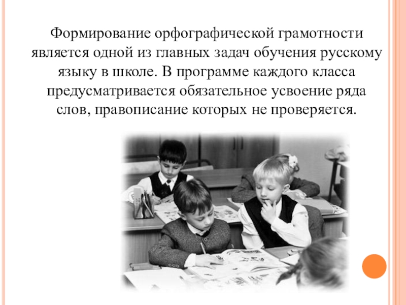 в школе. В программе каждого класса предусматривается обязательное усвоение ряда слов, правописание которых не проверяется.