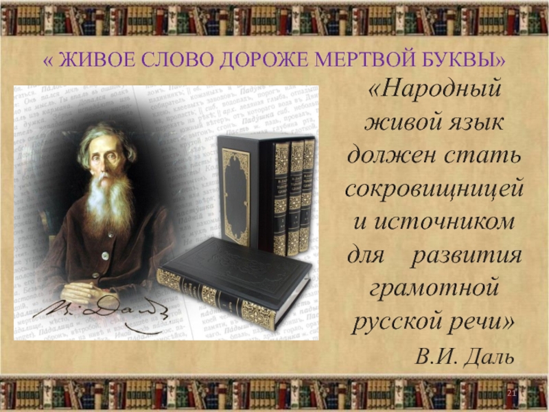 Слайд 21« ЖИВОЕ СЛОВО ДОРОЖЕ МЕРТВОЙ БУКВЫ»