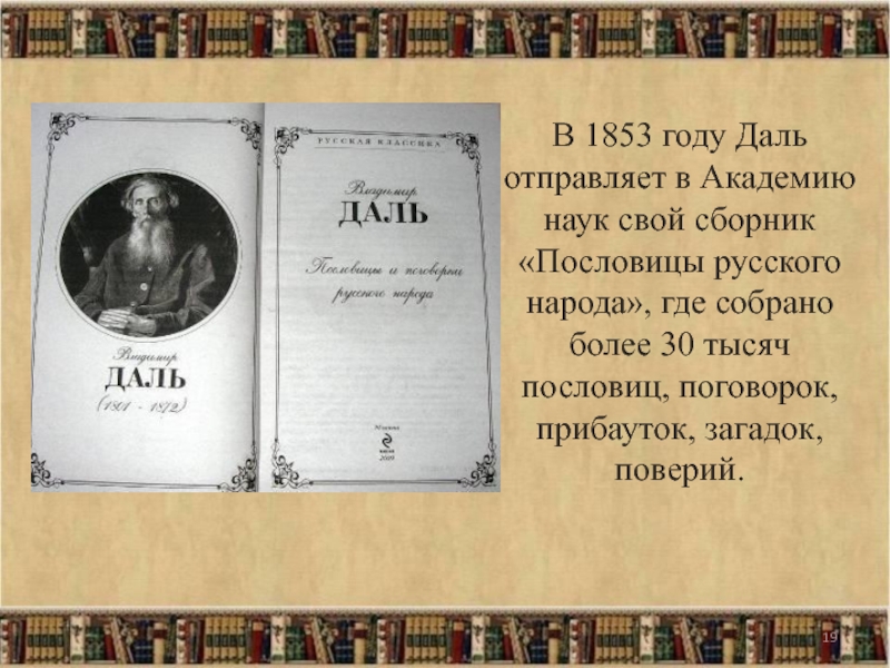Слайд 19В 1853 году Даль отправляет в Академию наук свой сборник «Пословицы