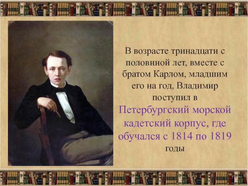 его на год, Владимир поступил в Петербургский морской кадетский корпус, где обучался с 1814 по 1819 годы