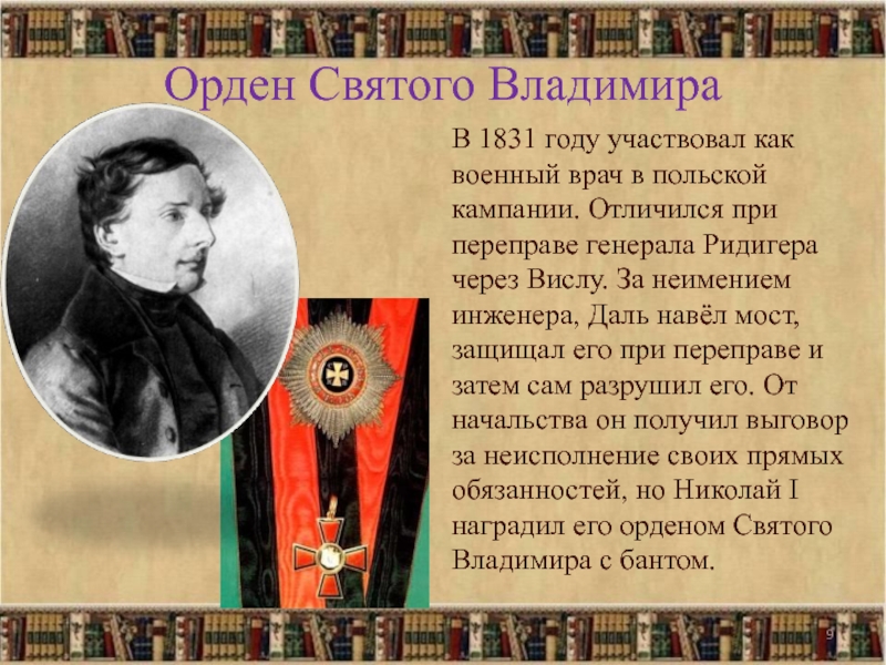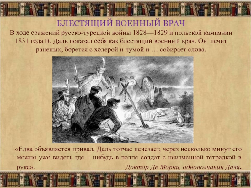 1831 года В. Даль показал себя как блестящий военный врач. Он лечит раненых, борется с холерой и чумой и … собирает слова.