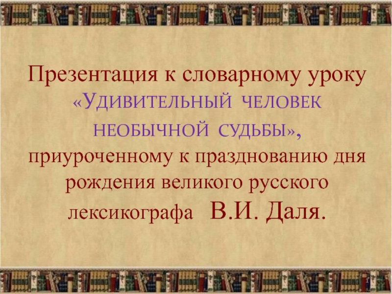 Презентация к словарному уроку «УДИВИТЕЛЬНЫЙ ЧЕЛОВЕК НЕОБЫЧНОЙ СУДЬБЫ», приуроченному к празднованию