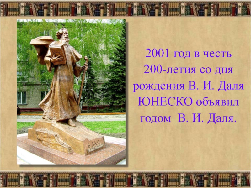 Слайд 272001 год в честь 200-летия со дня рождения В. И. Даля