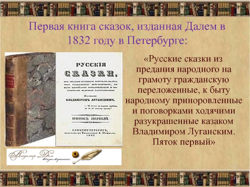 Слайд 14Первая книга сказок, изданная Далем в 1832 году в Петербурге: