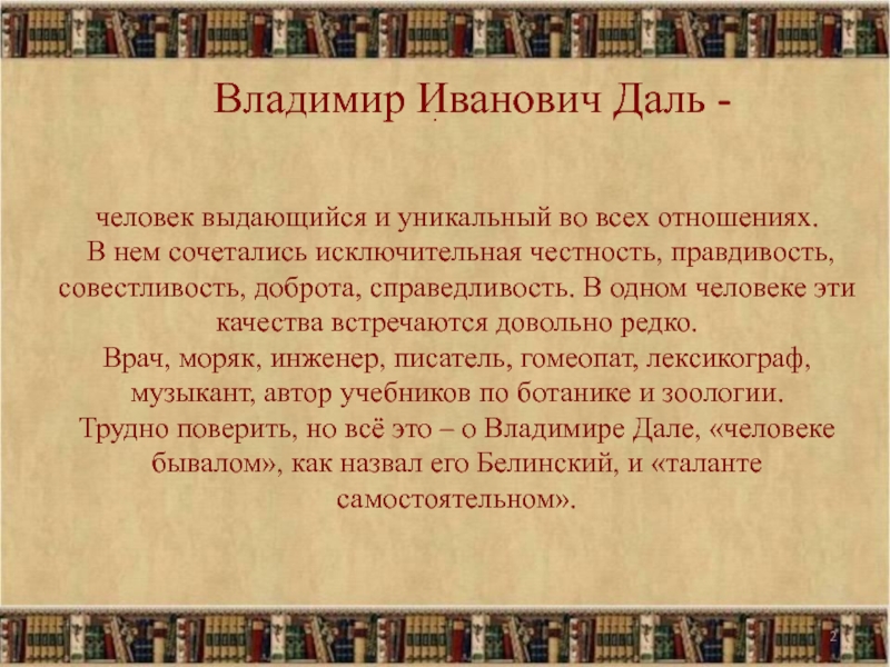 Трудно поверить, но всё это – о Владимире Дале, «человеке бывалом», как назвал его Белинский, и «таланте самостоятельном».