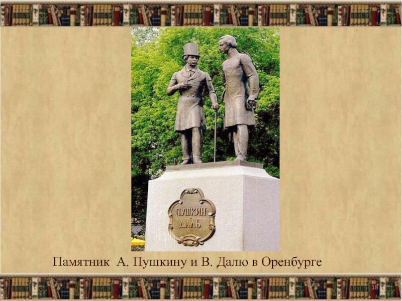 Слайд 18Памятник А. Пушкину и В. Далю в Оренбурге
