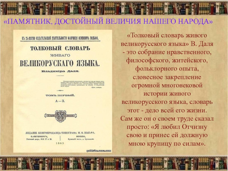 Слайд 24«Труд Даля станет предметом гордости будущих