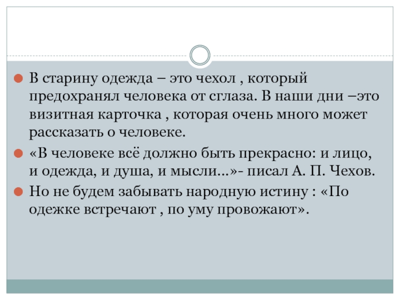 Слайд 4В старину одежда – это чехол , который предохранял человека от