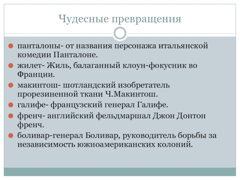 панталоны- от названия персонажа итальянской комедии Панталоне.