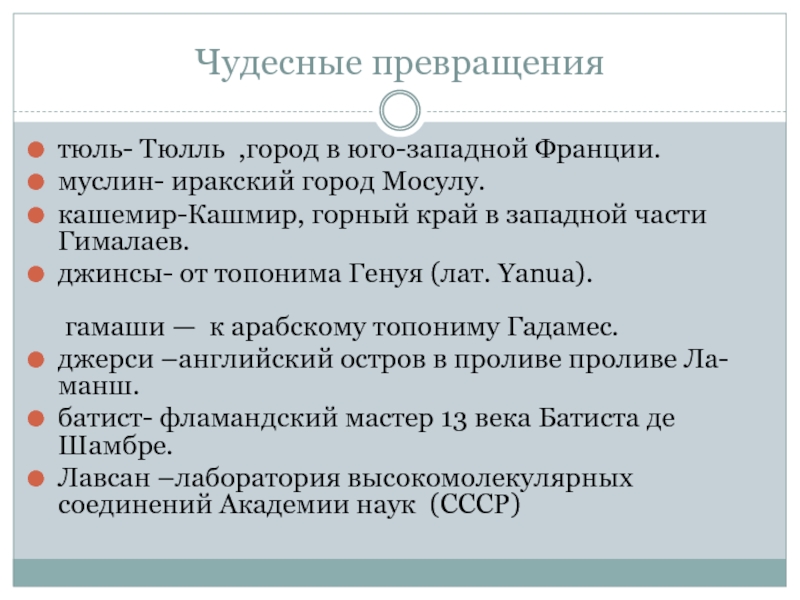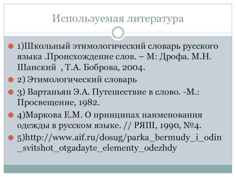 4)Маркова Е.М. О принципах наименования одежды в русском языке. // РЯШ, 1990, №4.