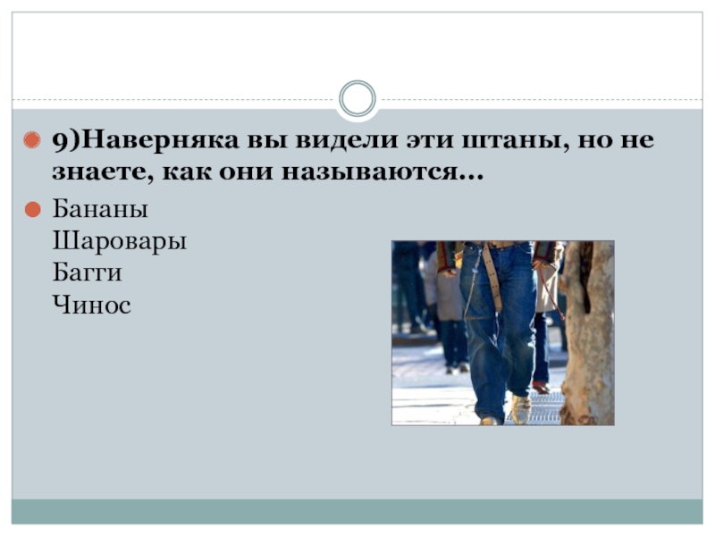 Слайд 319)Наверняка вы видели эти штаны, но не знаете, как они называются...