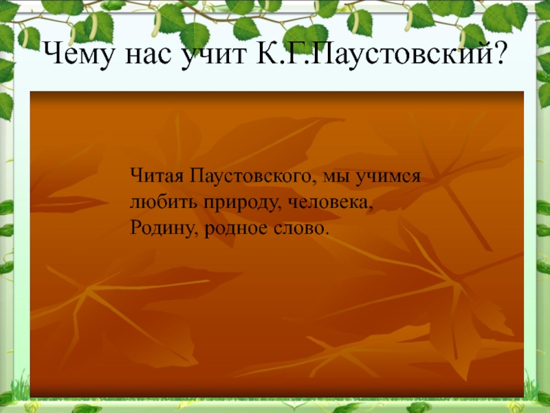 Слайд 29Чему нас учит К.Г.Паустовский?