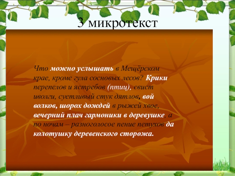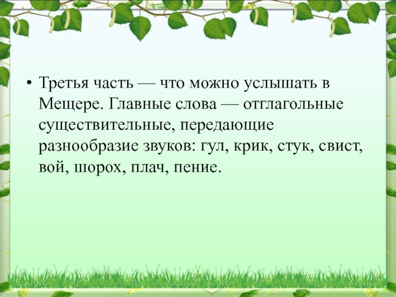 Третья часть — что можно услышать в Мещере. Главные слова —