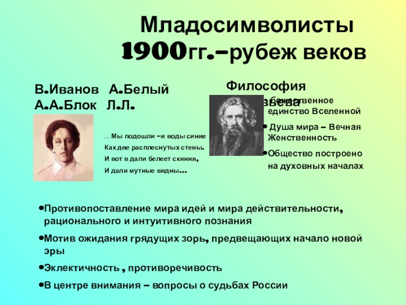 В.Иванов А.Белый А.А.Блок Л.Л. Эллис