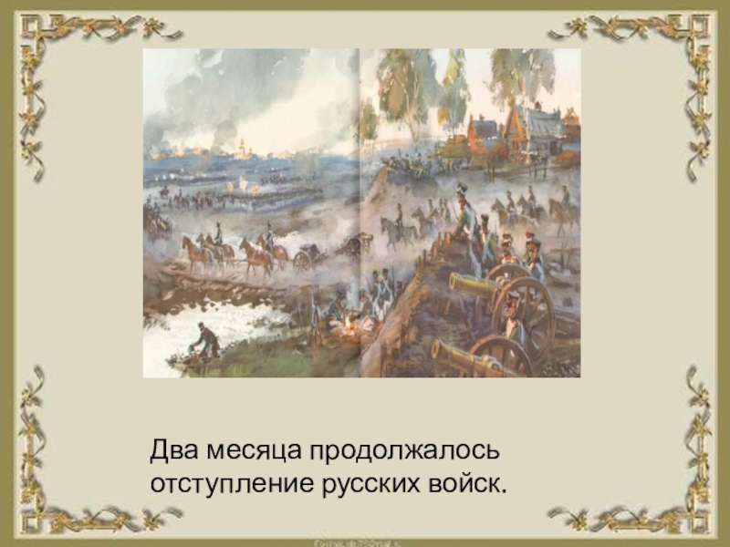 Слайд 9Два месяца продолжалось отступление русских войск.