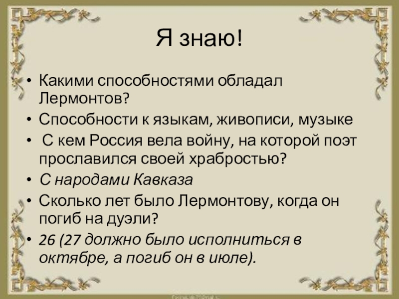 Сколько лет было Лермонтову, когда он погиб на дуэли?