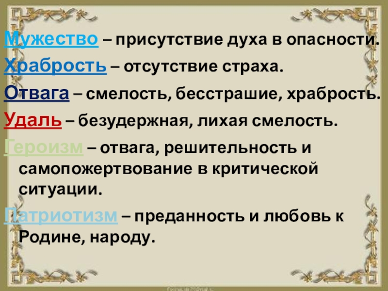 Героизм – отвага, решительность и самопожертвование в критической ситуации.
