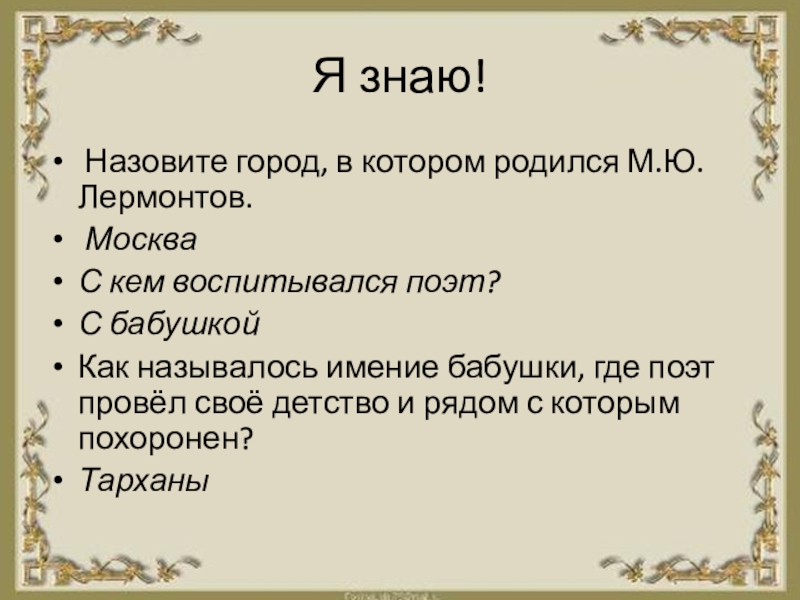 Назовите город, в котором родился М.Ю. Лермонтов.