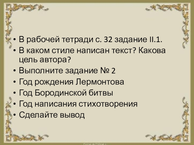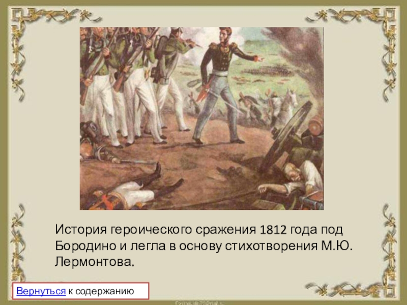 Слайд 1М.Ю. Лермонтов. История создания стихотворения «Бородино»