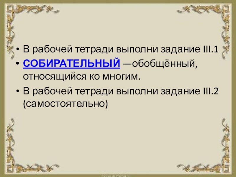 СОБИРАТЕЛЬНЫЙ —обобщённый, относящийся ко многим.