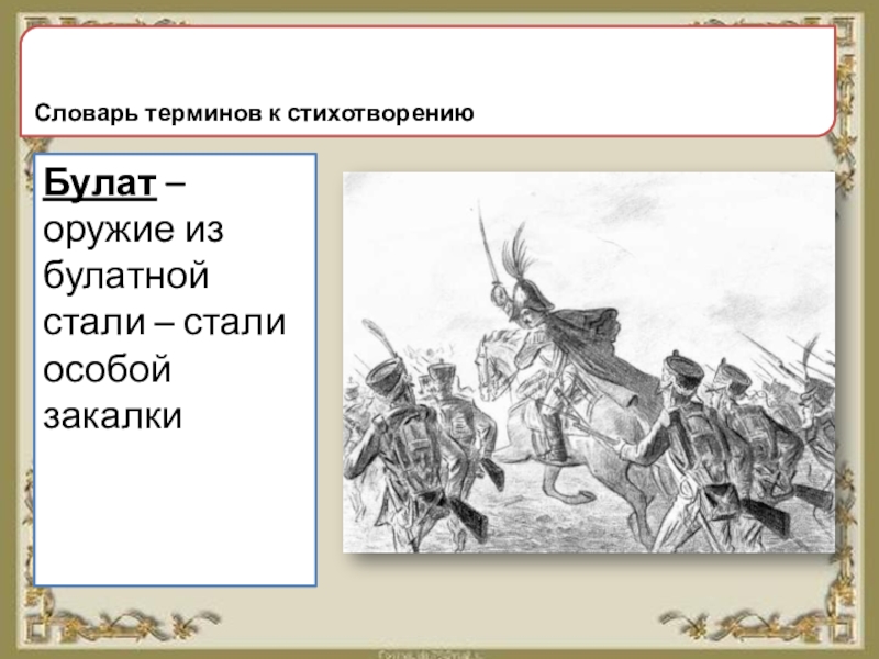 Слайд 28Булат – оружие из булатной стали – стали особой закалки