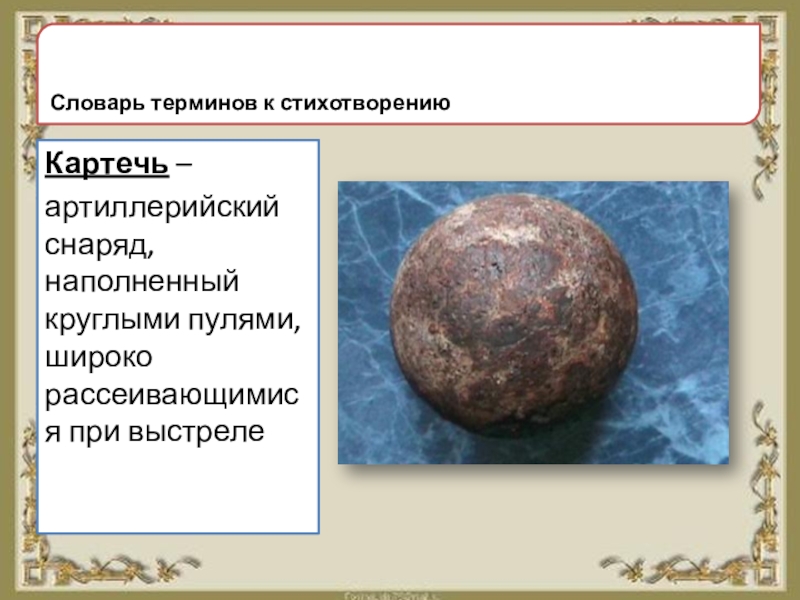 артиллерийский снаряд, наполненный круглыми пулями, широко рассеивающимися при выстреле