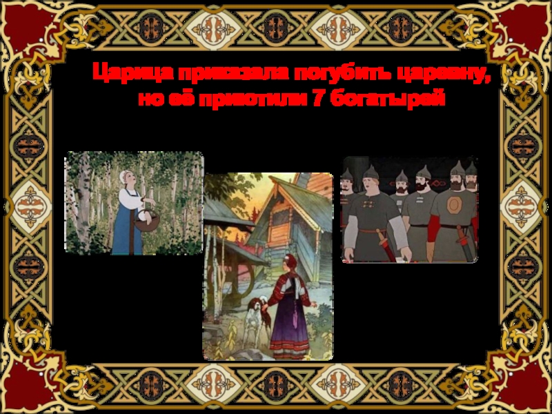 Царица приказала погубить царевну, но её приютили 7 богатырей.