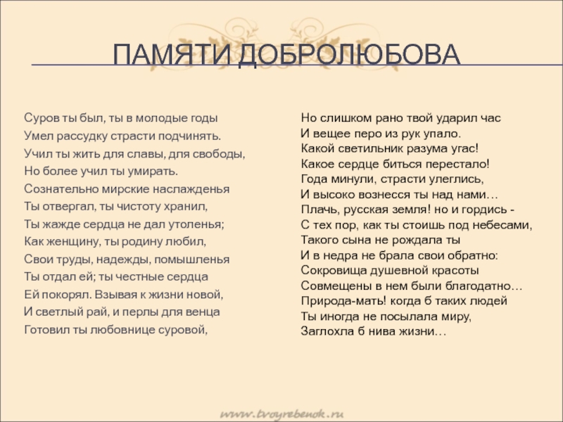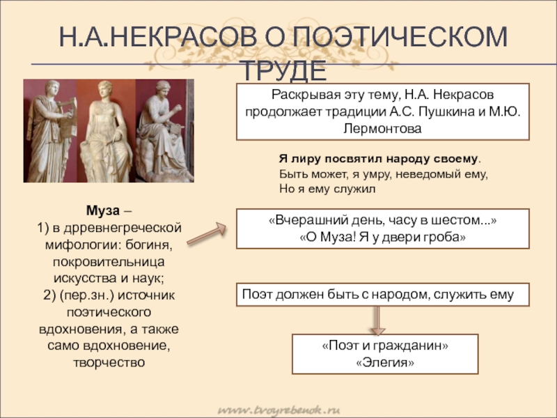 Раскрывая эту тему, Н.А. Некрасов продолжает традиции А.С. Пушкина и М.Ю. Лермонтова