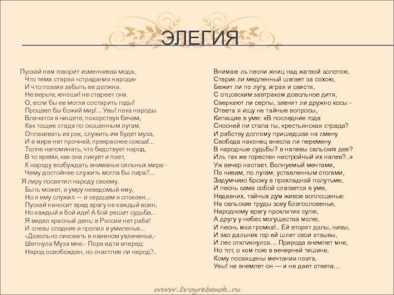 Н.А, Некрасов: «Это будет эпопея современной крестьянской жизни»