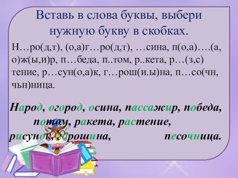 Народ, огород, осина, пассажир, победа, потом, ракета, растение, рисунок, горошина, песочница.