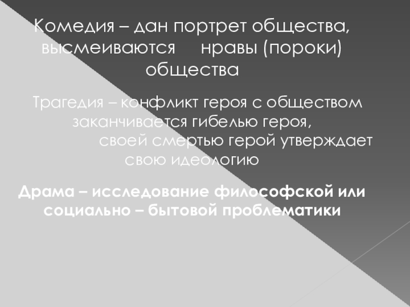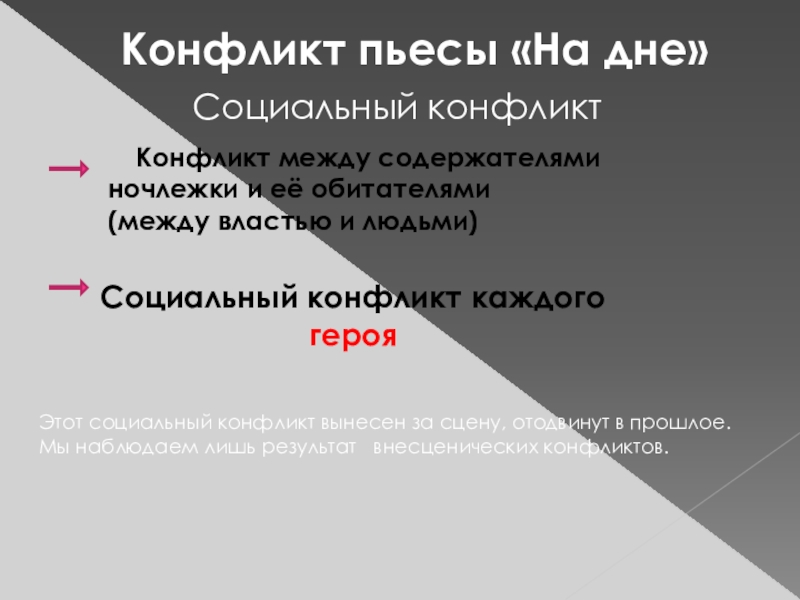 Этот социальный конфликт вынесен за сцену, отодвинут в прошлое. Мы наблюдаем лишь результат внесценических конфликтов.