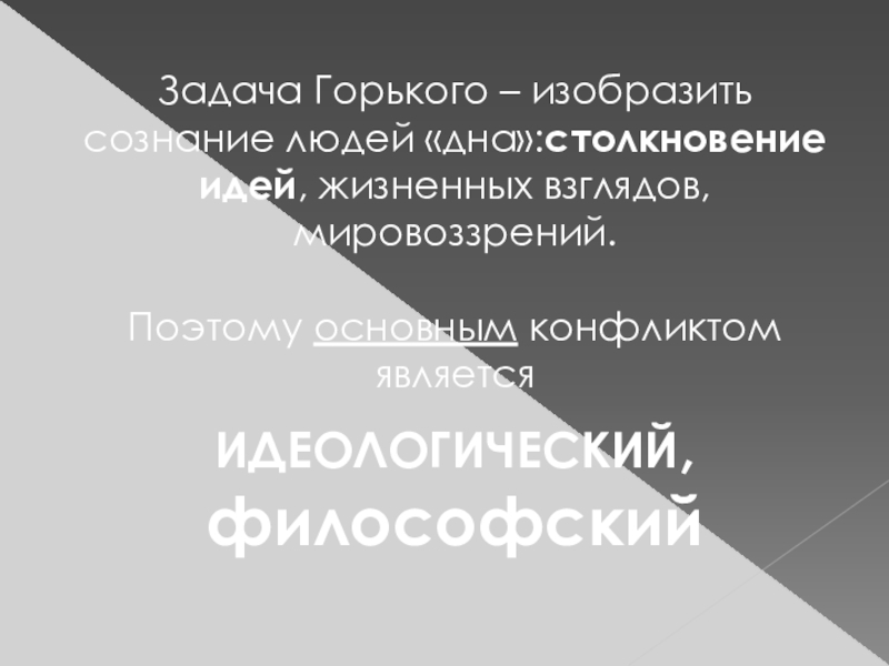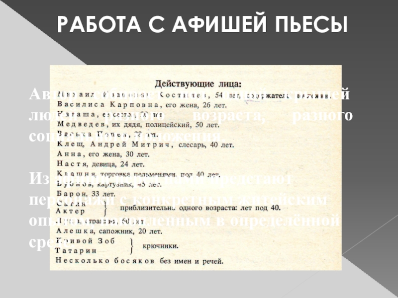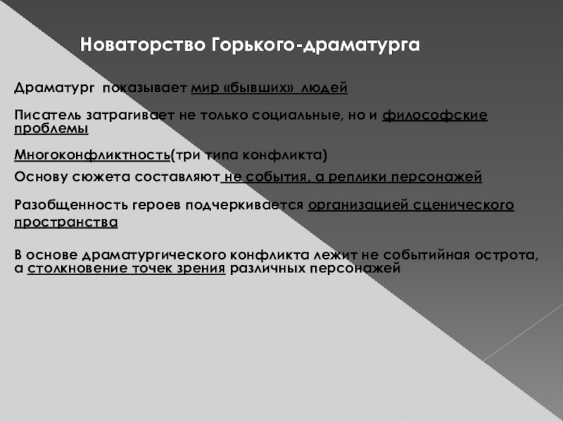 В основе драматургического конфликта лежит не событийная острота, а столкновение точек зрения различных персонажей