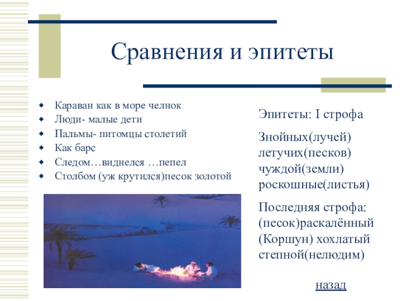 Знойных(лучей) летучих(песков) чуждой(земли) роскошные(листья)