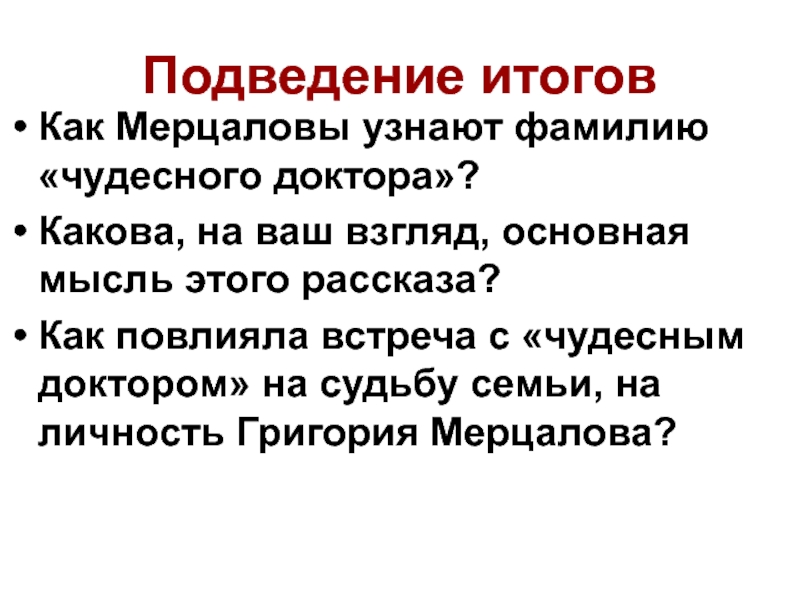 Как повлияла встреча с «чудесным доктором» на судьбу семьи, на личность Григория Мерцалова?