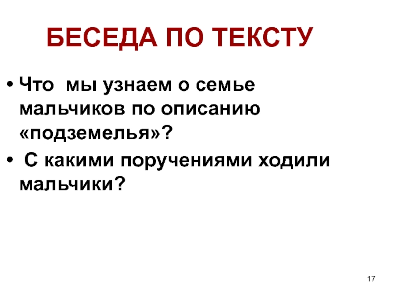 Слайд 17БЕСЕДА ПО ТЕКСТУ