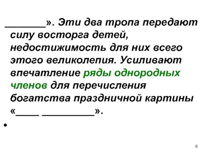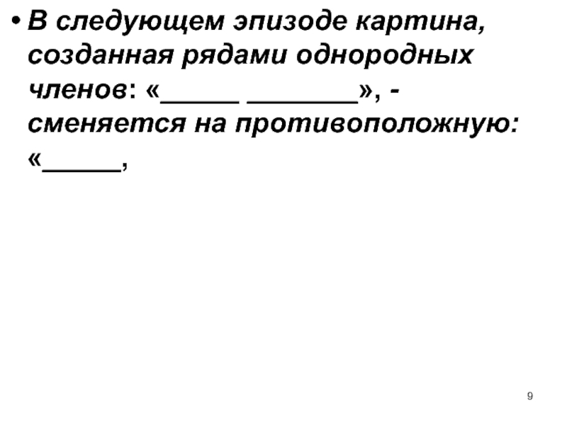 Слайд 9В следующем эпизоде картина, созданная рядами однородных членов: «_____ _______», -