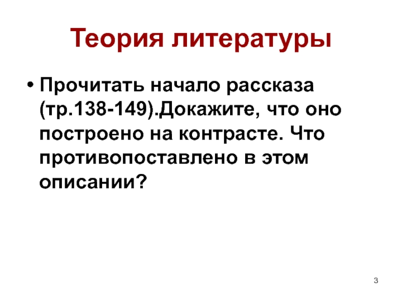 Прочитать начало рассказа(тр.138-149).Докажите, что оно построено на контрасте. Что противопоставлено