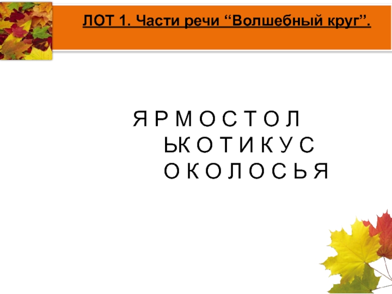 ЛОТ 1. Части речи “Волшебный круг”.Я Р М О С Т О Л ЬК О Т И