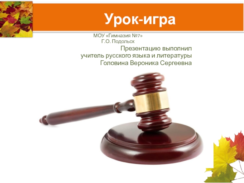 Урок-играМОУ «Гимназия №7» Г.О. Подольск Презентацию выполнил учитель русского языка и литературыГоловина Вероника Сергеевна