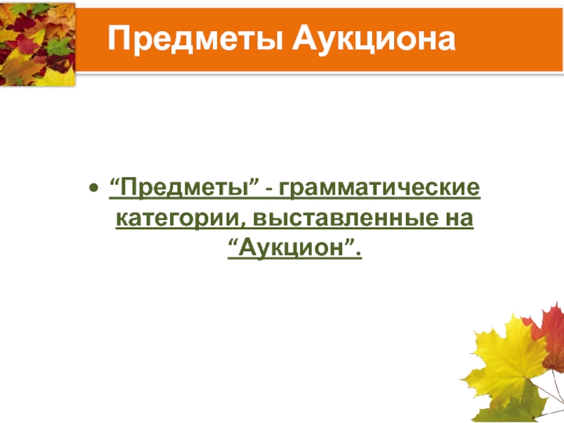 “Предметы” - грамматические категории, выставленные на “Аукцион”.