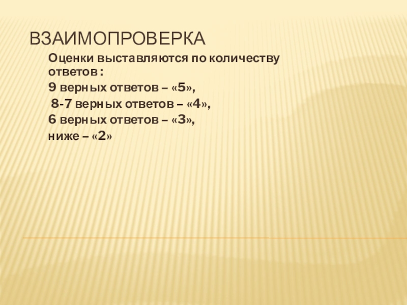 Взаимопроверка          Оценки выставляются по количеству ответов :9 верных