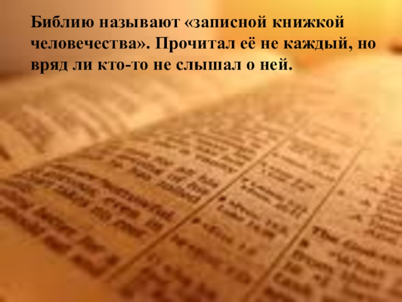 Слайд 5Библию называют «записной книжкой человечества». Прочитал её не каждый, но вряд
